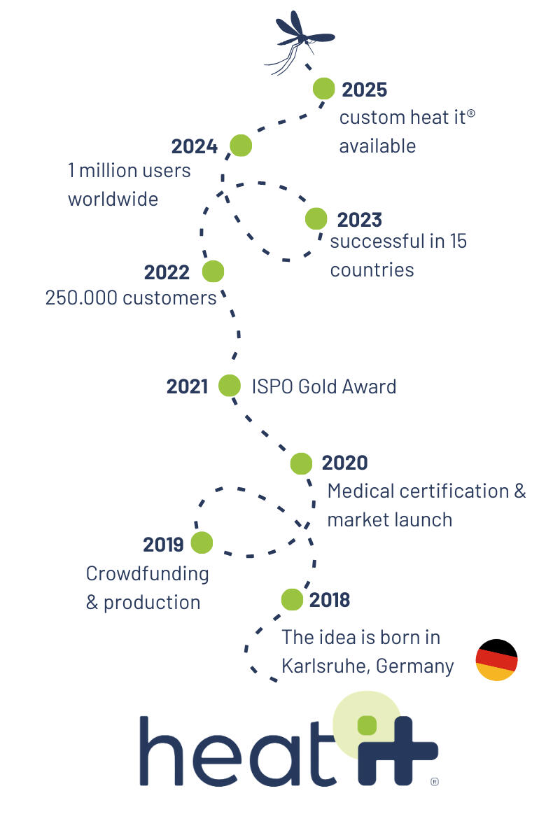 Like many great ideas, ours arose from a problem: itchy insect bites, with no good, natural solution. What began as a student idea grew into an international success with medical certifications, awards, and millions of satisfied users worldwide.Despite this growth, we've never forgotten our roots. We're incredibly proud that we've kept production in-house: every heat it® is still made in Germany.