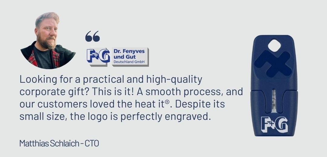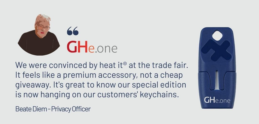 Let's be honest: most corporate gifts are tossed away or disappear deep into a drawer, only to resurface during a house clean-up. With heat it®, you’re giving something different. Something of value that actually gets used. Something that gets shared, hangs on keychains or lanyards, and is taken along on every adventure.And your brand is right there. Always close, always in sight and ready to help.