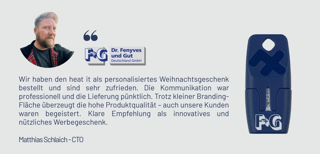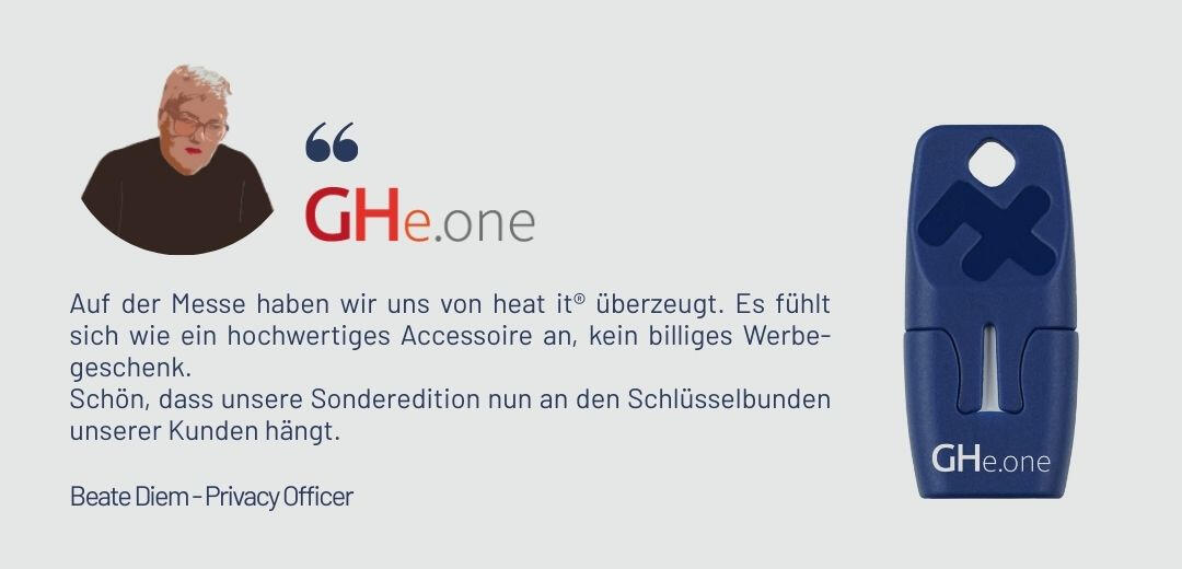 Seien wir mal ehrlich: Die meisten Firmengeschenke landen im Müll, verschwinden schnell in einer Schublade oder werden zum Staubfänger. Mit heat it® ist das anders. Sie verschenken etwas Sinnvolles, das tatsächlich genutzt wird. Etwas, das man seinem besten Freund ausleiht und auf Abenteuer mitnimmt, gut befestigt an einem Schlüsselring oder Lanyard.Und Ihre Marke begleitet Ihre Mitarbeiter und Kunden auf all Ihren Reisen. Immer in Ihrer Nähe, immer im Blickfeld.
